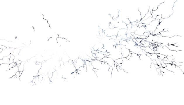 Pixelated white electric arcs against a black background resembling branched tree roots