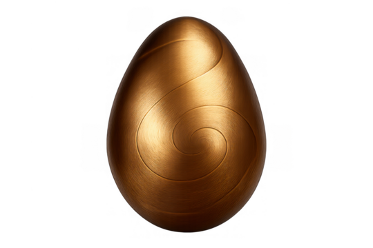 Golden metallic egg with sculpted spiral pattern representing wealth, luxury, and success, transparent background