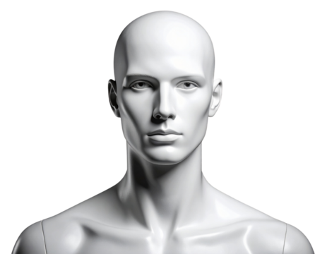 Firefly_Close-up view of a clean white mannequin head and upper body, featuring smooth, featu (