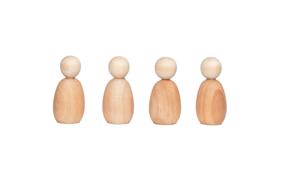 four wooden miniature people