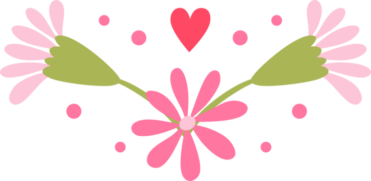 Reflected composition purple and pink flowers is made in folk art. Design element, border element, print in rustic style, isolated white background.