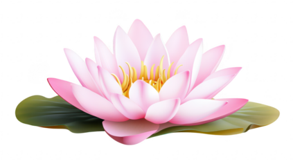A beautifully rendered pink lotus flower in full bloom. resting gracefully on a green leaf. symbolizing purity and tranquility. perfect for nature-themed designs or wellness content
