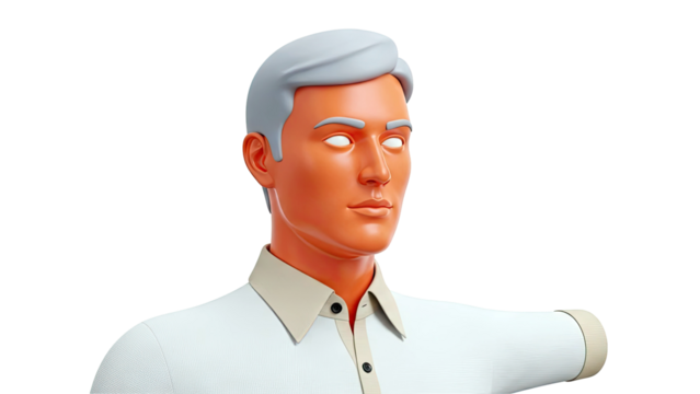 3D Render of Mannequin with Orange Skin and Gray Hair