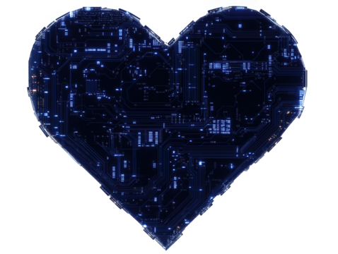 Futuristic circuit board heart design for technology and innovation concepts