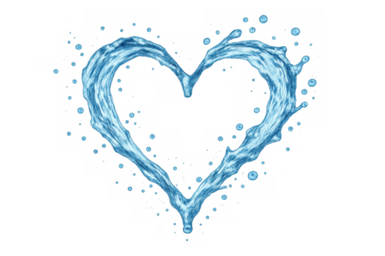 Water splash forming a heart shape symbolising love, purity, and refreshment on a transparent background