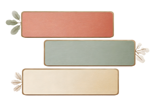 Color-coded holiday info boxes with simple rounded corners and flat texture for slide layouts, in pastel red, green, and gold, isolated on a white background, in a simple style, with a transparent PNG