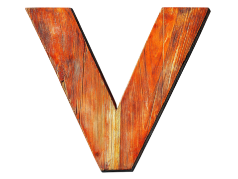 Wooden letter v on black background, vintage typography and rustic charm for designs