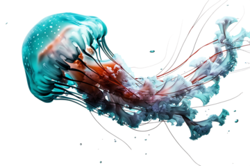 Colorful jellyfish isolated on transparent PNG background image perfect for marine-themed illustrations or underwater designs