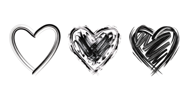 Red and White Gradient Hearts Scattered on Black isolated on transparent background