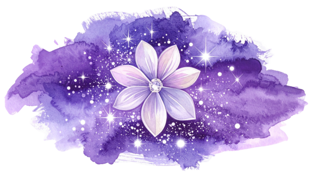 Watercolor galaxy with a shimmering, elegant flower at the center