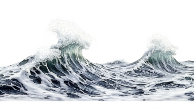 Ocean waves, stylized, powerful, crests