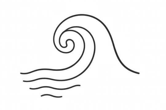 Stylized ocean wave drawing with swirling water lines, abstract water design element, transparent background