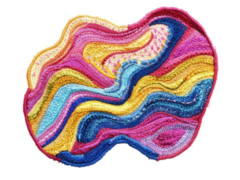 Colorful tribal pattern pillow with geometric designs on transparent background