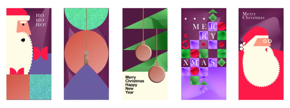 A collection of five colorful and modern Christmas-themed banners featuring abstract designs of Santa Claus, ornaments, and festive greetings. The vibrant vector illustration of an abstract background