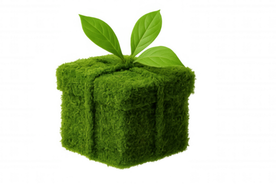 Green gift box growing leaves, representing eco-friendly concepts, natural sustainability, and environmental care