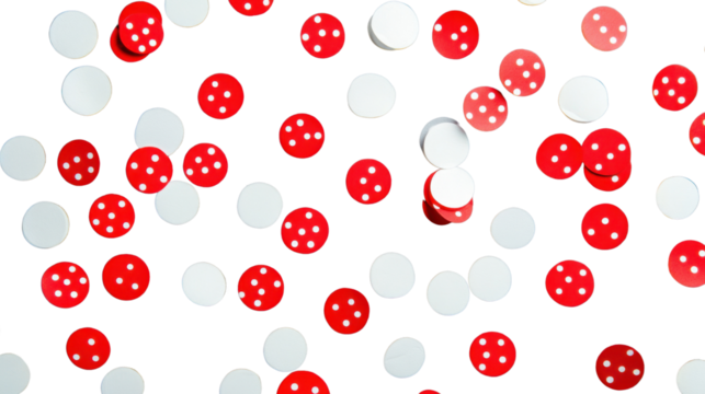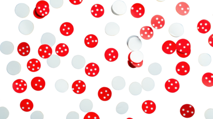Red and white round confetti falling on transparent background