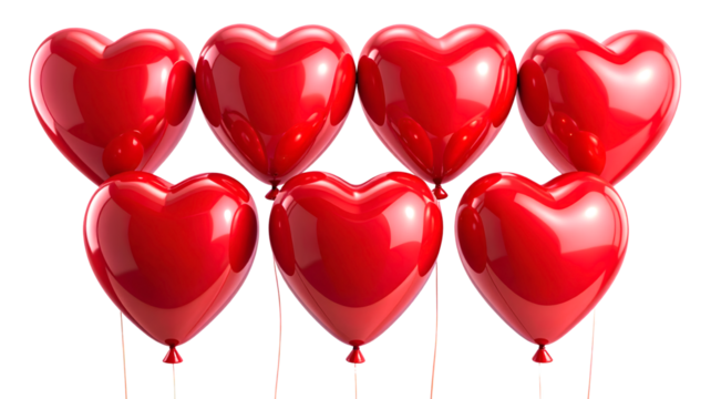 Heart shaped balloons isolated on transparent or white background