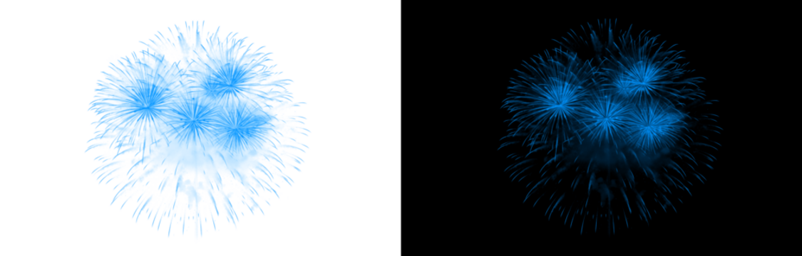 Beautiful cyan blue fireworks arrangement transparent composite element festive explosion isolated on checkered background ready for instant use abstract visual picture