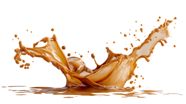 A dynamic splash of rich, dark chocolate liquid isolated on a transparent background