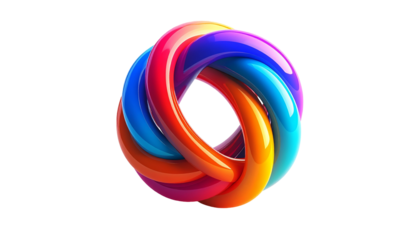 Twisted, glossy, colorful interlocking rings against a black backdrop