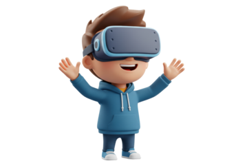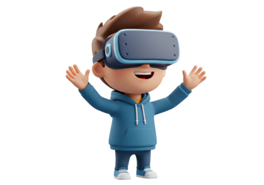 Isolated Cartoon Boy Wearing VR Headset