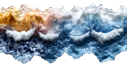Abstract Ocean Waves Blue and Gold Resin Art, Fluid Water Texture for Design, isolated on transparent background.