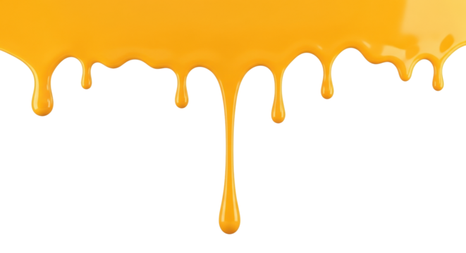 Isolated yellow paint dripping, creamy, vibrant, honey-like viscous texture on surface