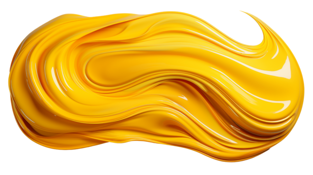 Yellow Liquid Swirl Dynamic 3D Art, Flowing Paint Texture for Graphic Design, isolated on transparent background.