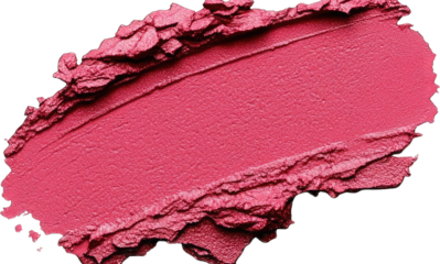 Close-up view of a vibrant pink cosmetic texture against a white background