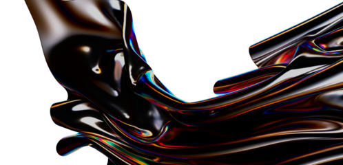 Captivating abstract artwork featuring a flowing, iridescent material with brilliant reflections against a white background.