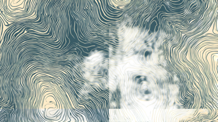 A mesmerizing abstract artwork featuring swirling black and white lines on a blue background