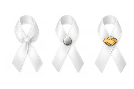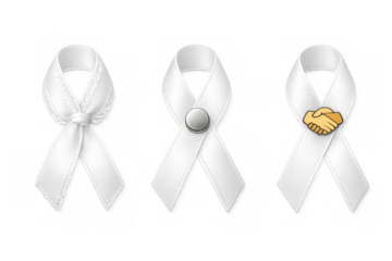 White awareness ribbon collection depicting domestic violence, lung cancer, bone cancer, purity, and peace concepts