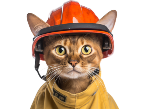 Abyssinian Cat as a Brave Firefighter - Transparent Background