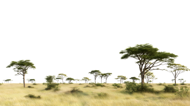 serene landscape featuring cluster of acacia trees  isolated on white background