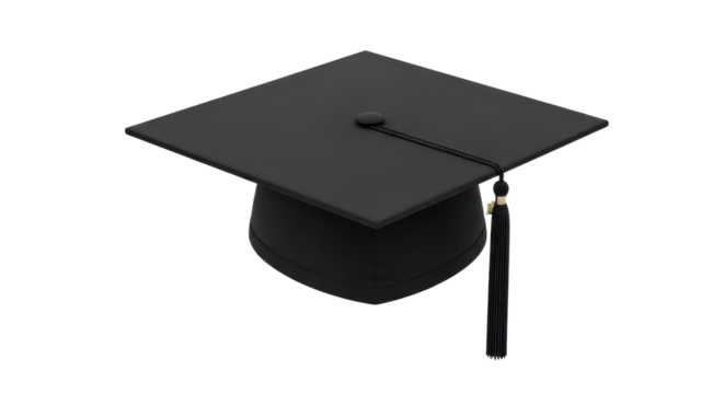 Classic black graduation cap with tassel symbolizing academic achievement and success isolated PNG with Transparent Background