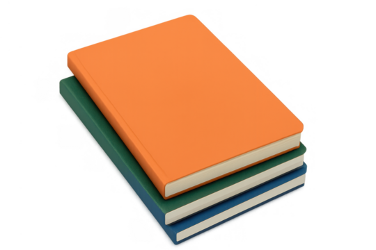 Stack of books representing education, learning, and knowledge, with blank covers for custom branding on transparent background