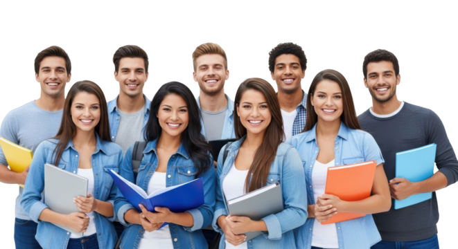 Diverse Group of Smiling Students creative composition showing students, education, learning concept ideal for professional branding and digital marketing visuals