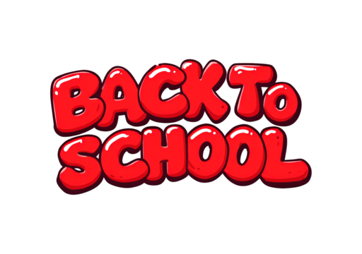 Bright cartoon style back to school text in red bubble letters on transparent background, PNG