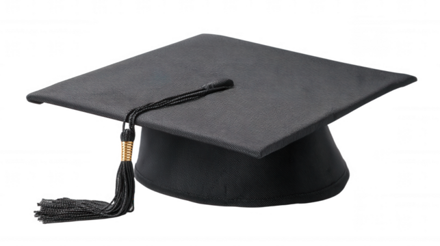 Graduation cap with tassel representing education and academic achievement, isolated on tranparent background