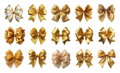 PNG Elegant golden ribbon bows collection, element set on transparent background
