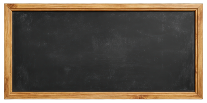 A dark, rectangular blackboard with a light brown wooden frame