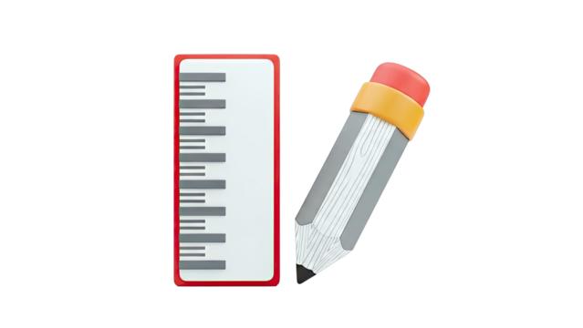 3D Rendered Pencil and Ruler on White Background