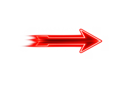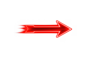 Red neon arrow moving fast, showing concept of speed, direction, technology, progress, and forwarding ideas. Transparent background