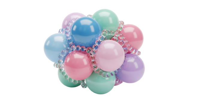 "Colorful Bunch of Pastel Balloons with White Rope Accent (Adobe Stock Style)"