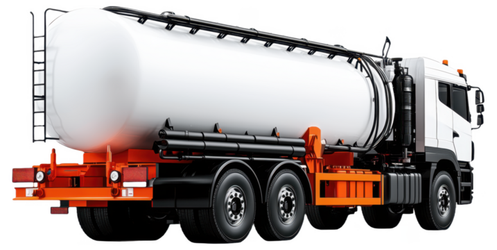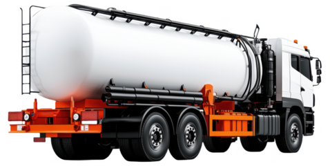 White food truck with red accents and a popcorn graphic, featuring a serving window and striped awning on transparent background.