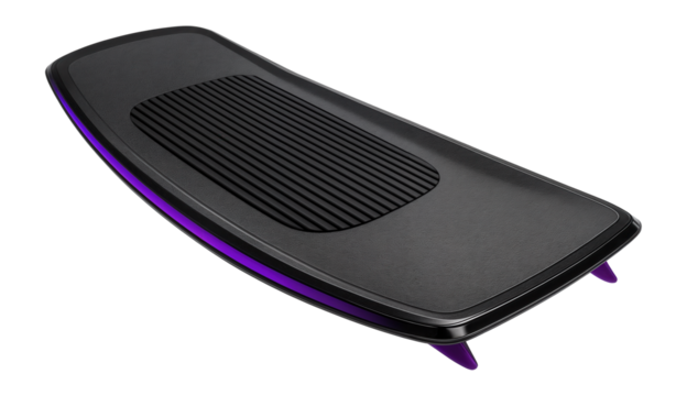 Modern curved floor lamp with adjustable head and brass accents isolated on transparent background