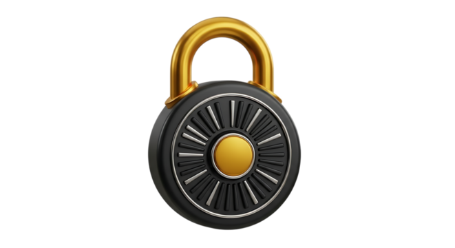 A white, 3D-rendered padlock with a keyhole, set against a black background