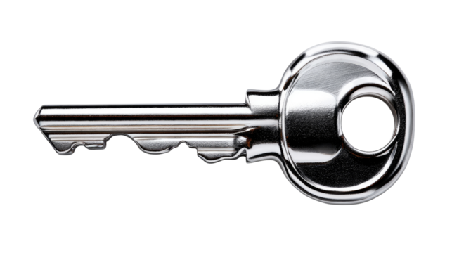 Key to Unlock Security: A close-up view of a shiny key. The image highlights the key's sleek design, representing security and access.