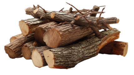 Stack of firewood ready for winter use. transparent background