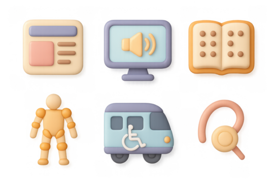 Accessibility icons illustrating communication and mobility concepts for inclusive design projects